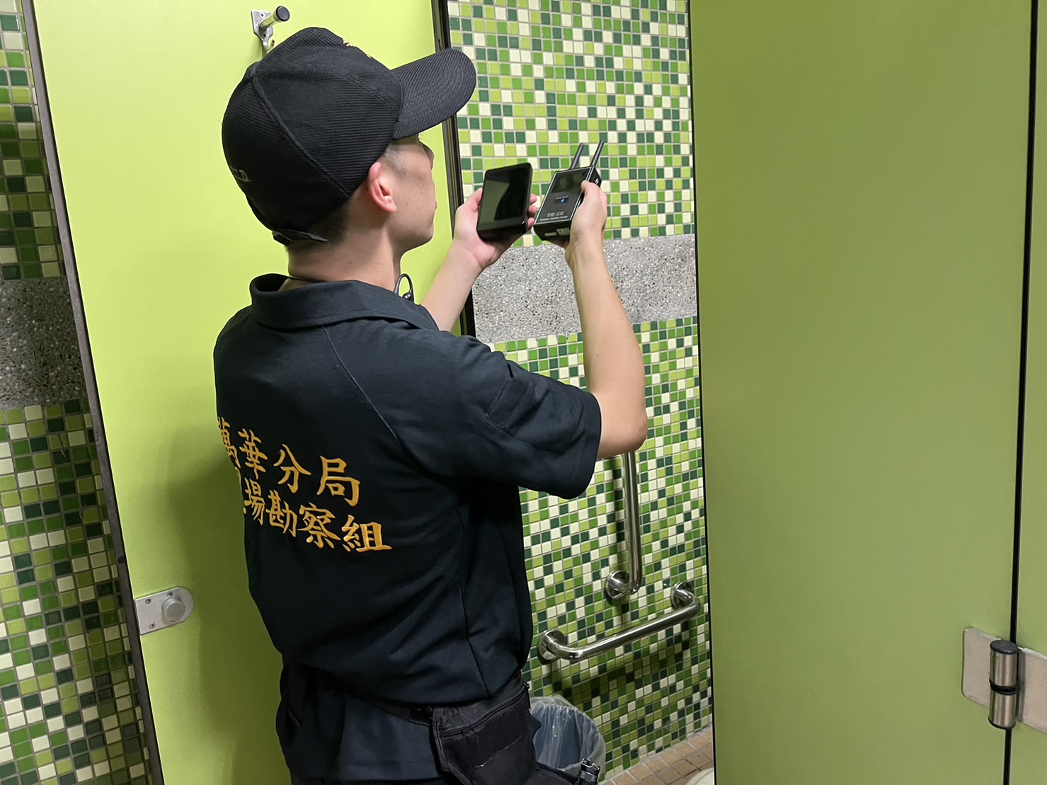 萬華分局警員以無線影像攝影機掃描器及紅綠光源鏡頭發現器協助反針孔偵測
