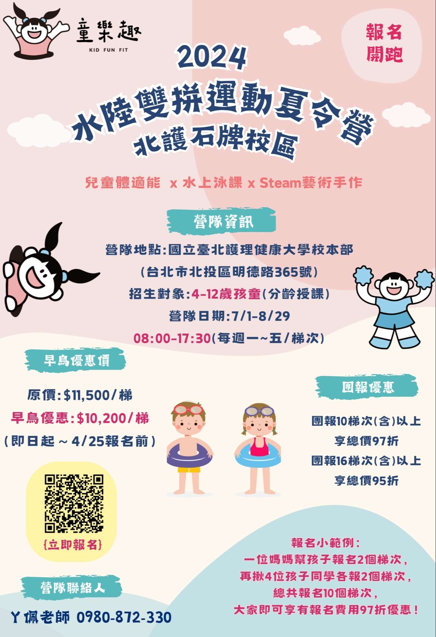 轉自 國立臺北護理健康大學 2024水陸雙拼運動夏令營