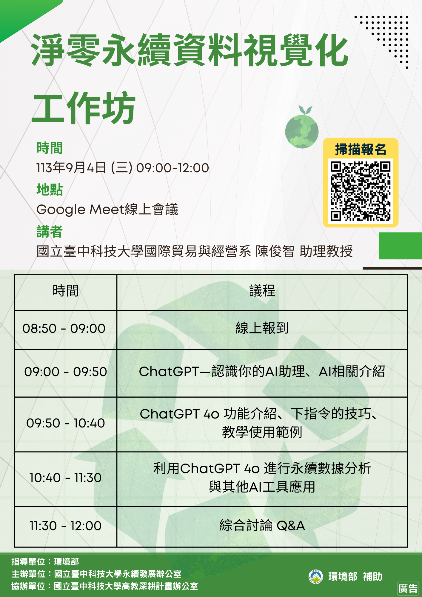 三、「淨零永續資料視覺化工作坊」相關活動訊息如下: