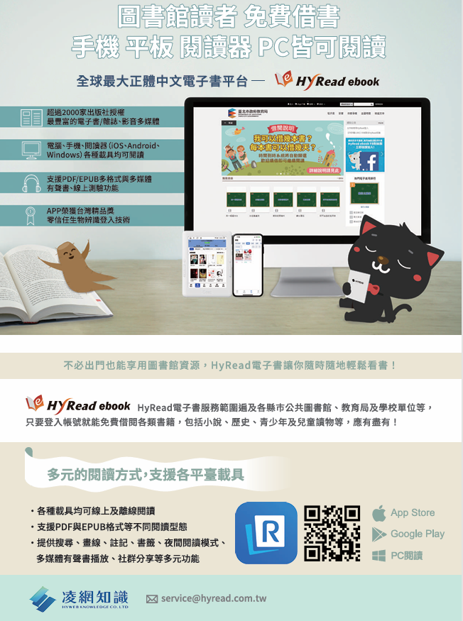 二、「HyRead Gaze電子紙閱讀器」具備護眼螢幕、輕巧便攜、 長效續航等優勢,並能整合各縣巿公共圖書館、教育局及 學校單位等豐富多元之HyRead電子書平台資源,供全國師 生免費借閱電子書、雜誌等(詳附件一),有助於提升教 學、研究及個人學習效率。