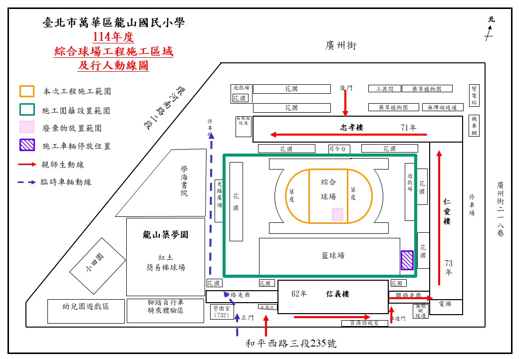 上述施工區域及上、放學動線請參照施工區域及行人動線圖